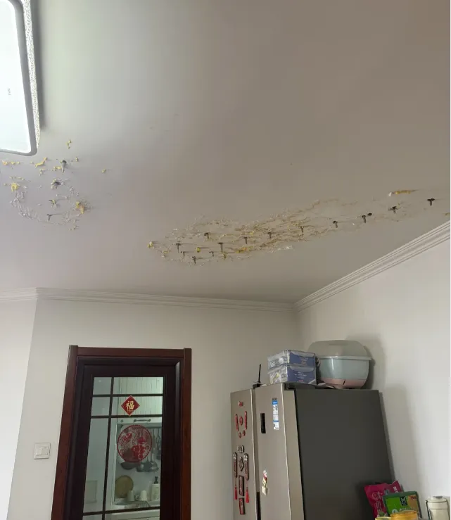 更让人崩溃的是,顶楼的漏水问题,只要下大雨,防水层稍微有点老化,天花板就开始渗水、起皮。修了这里那里又漏,永远修不完。那几年住顶楼,我真的快崩溃了,最后终于下定决心搬家。