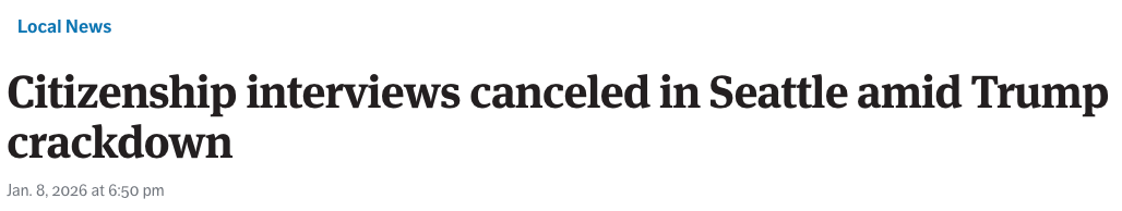 去年11月,白宫附近两名国民警卫队成员被一名阿富汗籍人士杀害后,川普总统下令对所谓“高风险关注国家”的移民加大审查力度,并暂停部分入籍申请。然而,自此之后,美国公民及移民服务局(USCIS)不仅取消了来自这些国家申请者的面试,也包括其他未受限制国家的合法永久居民。全美多州入籍面试和宣誓仪式也出现了类似取消的情况。