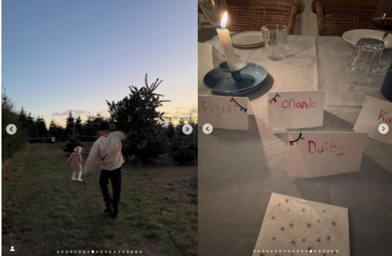 一张照片中,他与女儿黛西在户外草地嬉戏,父女互动温馨;另一张则是晚宴座位卡,上面写着佩里、黛西、布鲁姆以及布鲁姆与前妻米兰达・可儿所生儿子弗林(Flynn)的名字,展现出相当和谐的家庭氛围。