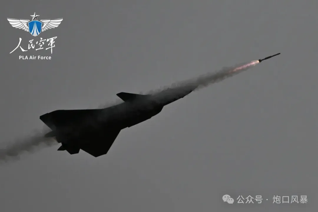 歼-20发射霹雳-10,巨大离轴角太吓人炮口风暴