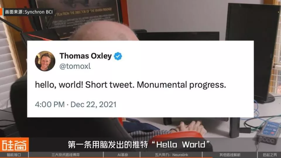 2020年,Synchron就完成了全球第一例人体植入手术,比Neuralink早了整整四年,几位渐冻症患者借助它实现了用意念发邮件、浏览网页,甚至打出了人类历史上第一条用脑发出的推特:“Hello World”。Synchron也拿到了美国FDA的“突破性医疗设备”认证,是首个获准在美国做长期植入试验的脑机接口公司。