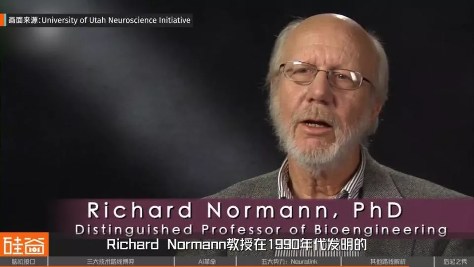 Utah Array是由犹他大学的Richard Normann教授在1990年代发明的,2005年获FDA批准,成为首个获批的高通道数植入电极。从2004年至今,几乎所有的侵入式BCI人体研究都用它,你在新闻里看到的那些“瘫痪者用意念控制机械臂”“失语者重新说话”的案例,背后很可能都有Utah Array的身影。