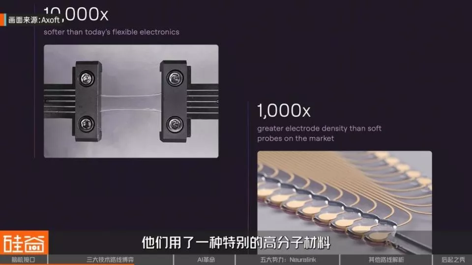 就像厚厚的铁块打成锡纸就能随便弯,厚塑料板变成保鲜膜就柔软多了,这一发现立刻启发了整个行业。Neuralink等公司也用上了类似思路——因为更薄的导线更柔软,不容易伤到脑组织。