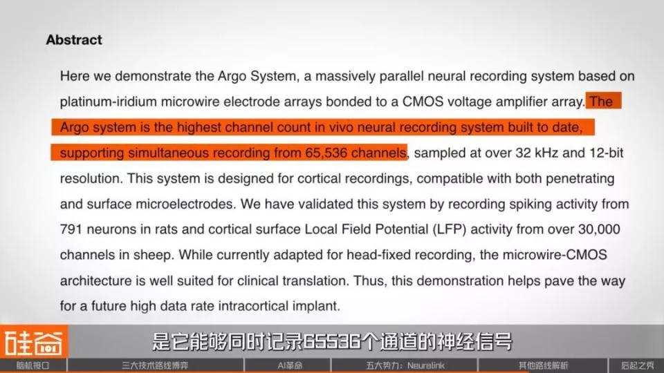 因为以他们的技术来讲,每两年把通道翻一番,这也是我觉得之前做电学脑机接口的时候,我们行业里面讲过了一个概念叫摩尔定律,就是基本上每18个月我们能够插在脑子的电极数翻一倍,这个是可以做到的。但它是一个设备还是几个设备植进去,这个不一定,它可能是个组合。