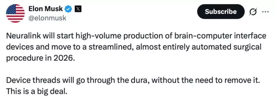 1月1日,马斯克突然在X上宣布:Neuralink的脑机接口设备将于今年大规模量产。截止到现在,Neuralink已经为13名患者植入了脑机接口设备。他们可以用“意念”打字、浏览网页、玩游戏。