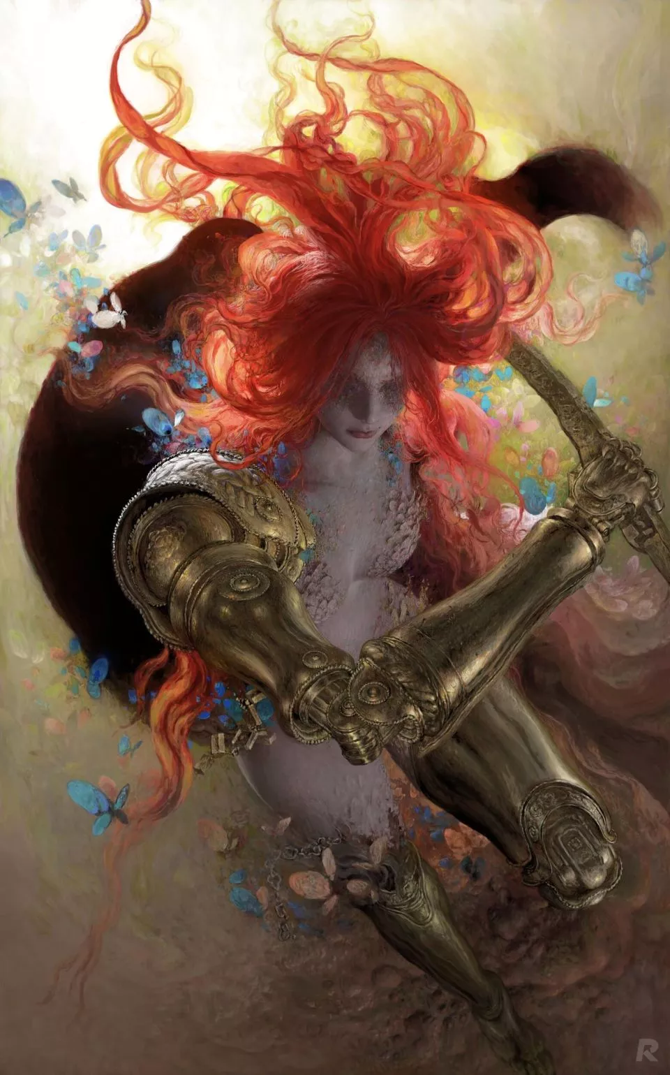 他完美地呈现了这个老头环里的最强boss,衰颓的躯体,空洞的双眼,沉重的金属义肢,猩红的发丝,每一个细节都无可挑剔。
