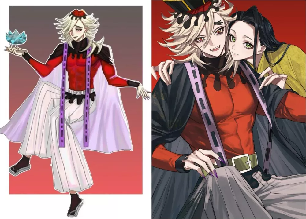 最后的成品是左图,右图是画师之前发布的作品。