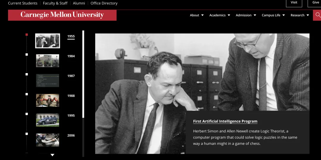 CMU位于工业城市匹茨堡,由钢铁大王卡耐基创办,原本是为匹兹堡工人阶级子弟提供职业技术教育,所以一直非常务实。1955年就开有人工智能项目。