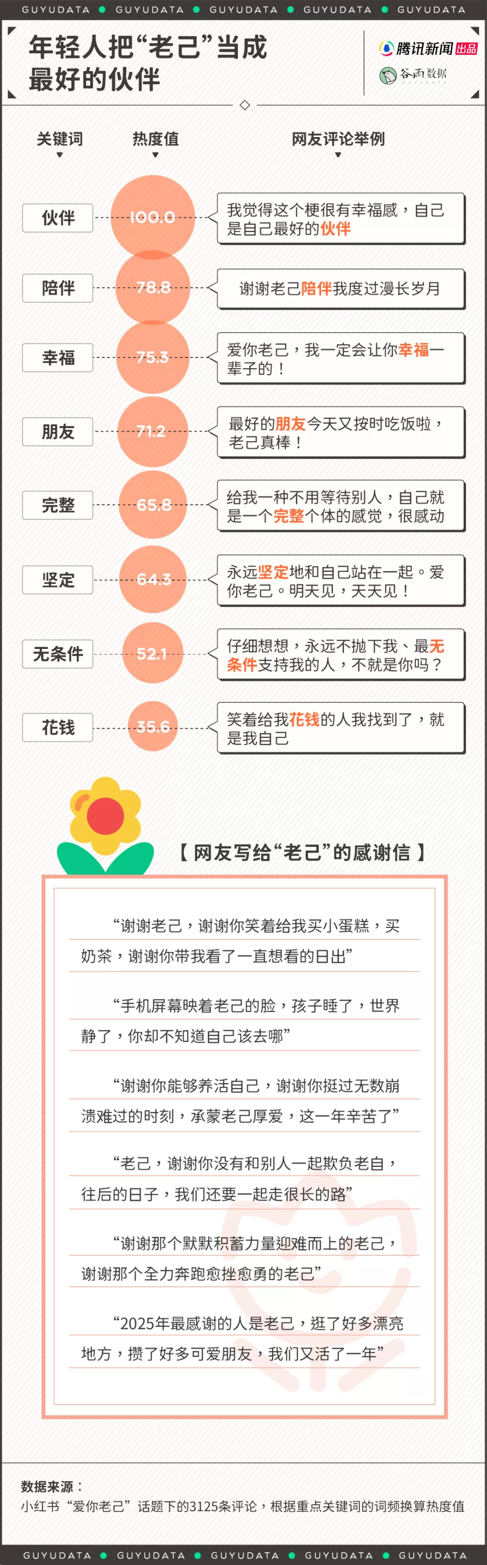 随便点开某个社交平台上的“爱你老己”话题,会看到大量网友为2025年的自己写下感谢信。“谢谢老己能够养活自己,把自己照顾得很好”“谢谢老己永远站在自己这边,从不和别人一起贬低自己”。