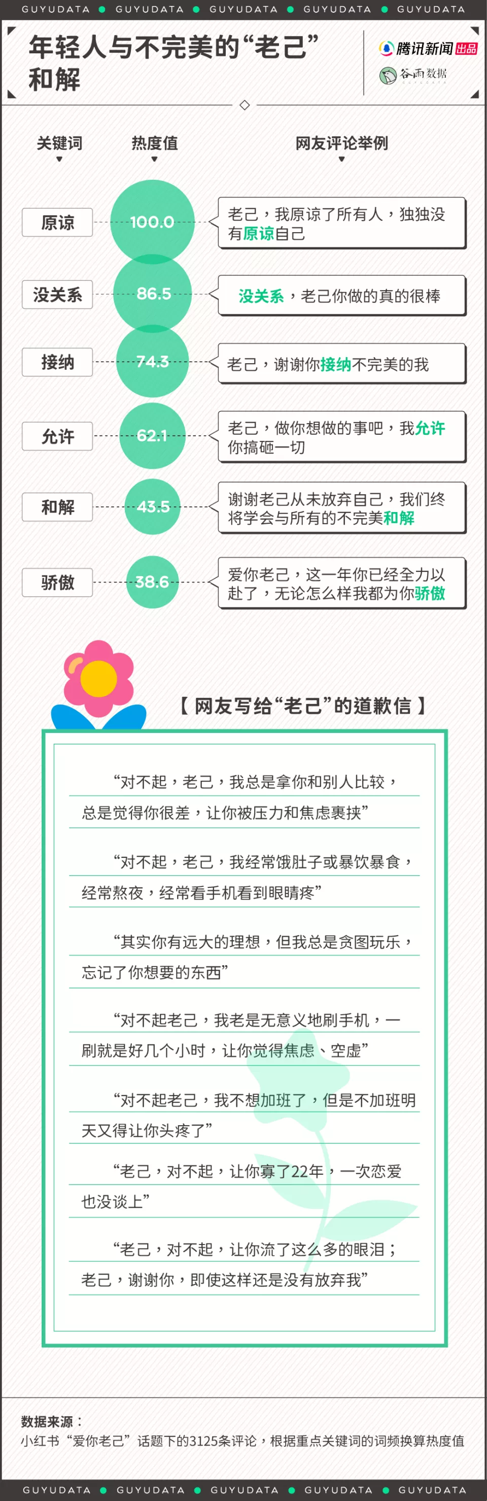 在这些感谢的话语中,“老己”是最了解自己的人,是无条件对自己好的人,是注定陪自己走到生命尽头的人。虽然“老己”还是自己,但视角这样一转换,似乎忽然多了一个可以依靠的朋友。