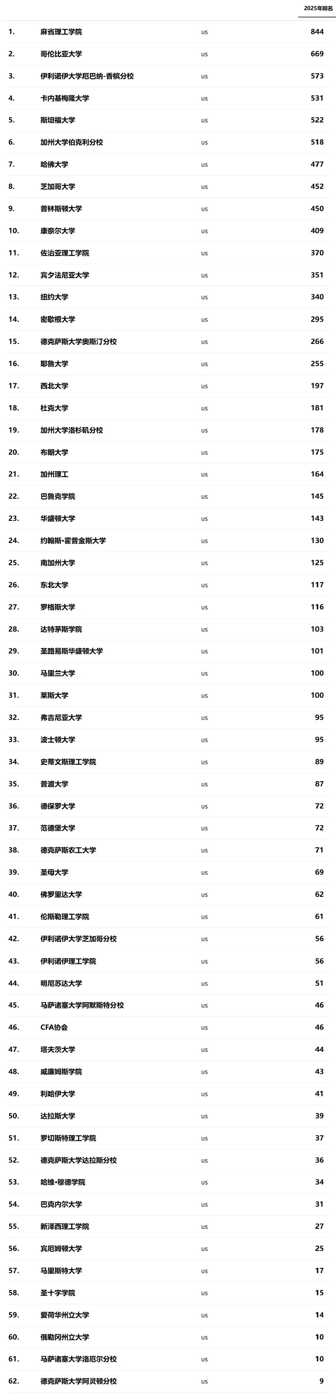 哥伦比亚大学(#2)、哈佛大学(#7)和普林斯顿大学(#9)仍在前列,但其他藤校排名远不如MIT、CMU、UIUC等理工强校。
