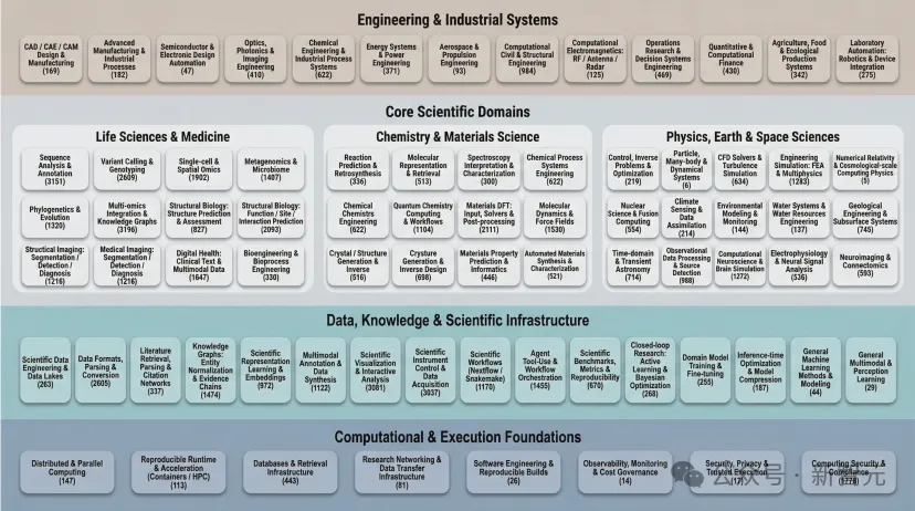 为此,他们从91个科学与工程领域出发,构建了一个覆盖AI4S实际应用场景的学科空间,并使用语言模型扩展搜索关键词,在GitHub与公共网络中进行大规模检索。