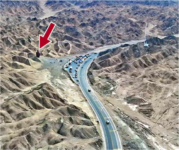 不过到了上月,有关质疑声音再起。 有的说,硕大的头部让人观感不适、感觉诡异,仿佛汉武帝被活埋; 有的称土坡前其实有7块巨石(第七块凿“瓜州”二字),从风水角度是“七星锁魂阵”; 还有人分析周围环境,称旁边的弯形道路是针对汉武帝头颅的“反弓煞”,或“斩首大刀”。