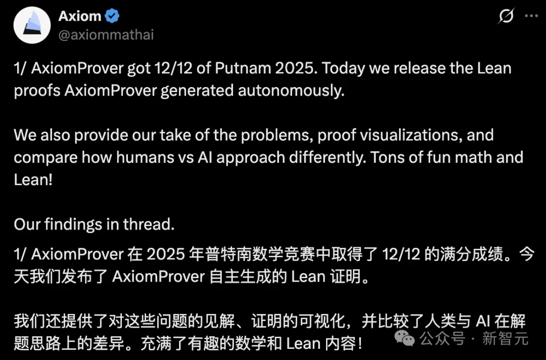 今天,24岁华人女学霸Carina Hong初创打造的AxiomProver,在2025 Putnam数学竞赛拿下了满分成绩。