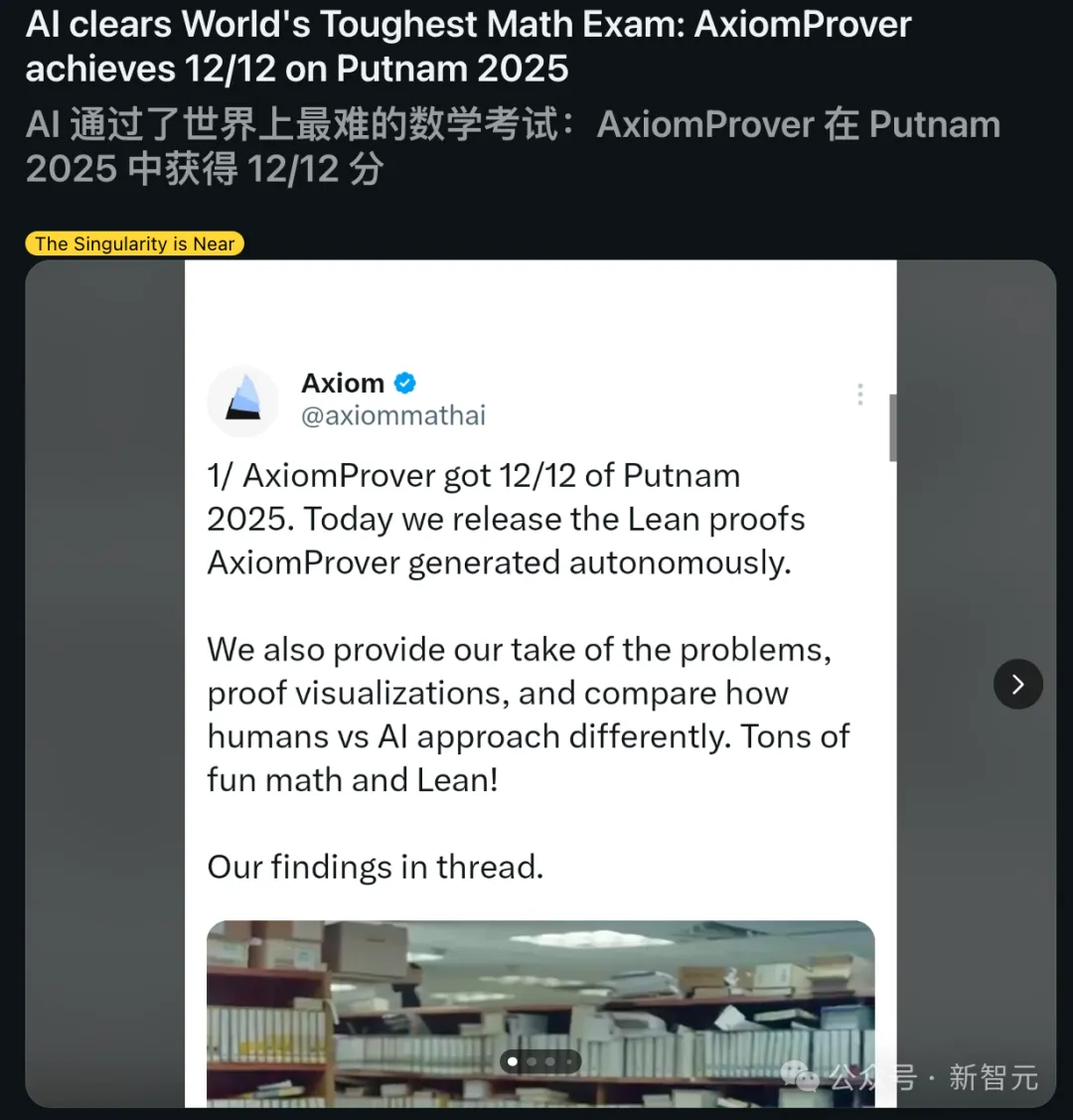 网友表示,「AxiomProver拿下Putnam竞赛比夺得IMO金牌更厉害,解决下一个千禧难题可能比预想的要来得更快」!