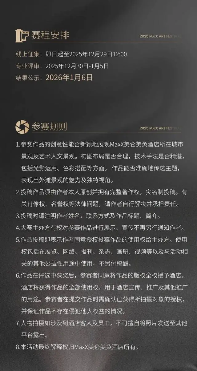 根据帖子信息,记者搜索到这项名为“艺术MaxX·城市记忆摄影大赛”的比赛,在华住会旗下上海东方美仑美奂酒店和华住美好家族官方公众号均有宣传。