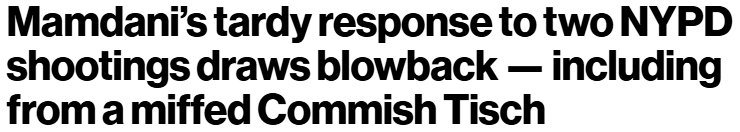 新上任不久的纽约市市长马姆达尼已因其对接连发生的两起警察涉枪案件反应迟缓、态度敷衍而遭遇强烈质疑,其中还包括与纽约市警察局(NYPD)局长杰西卡·蒂施(Jessica Tisch)之间的摩擦。