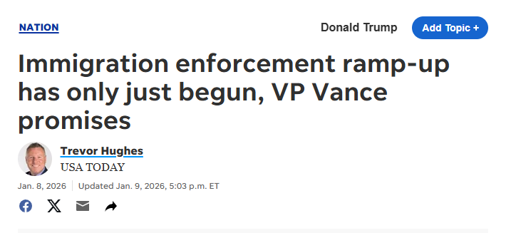 万斯:史上最大移民执法才刚开始USA Today