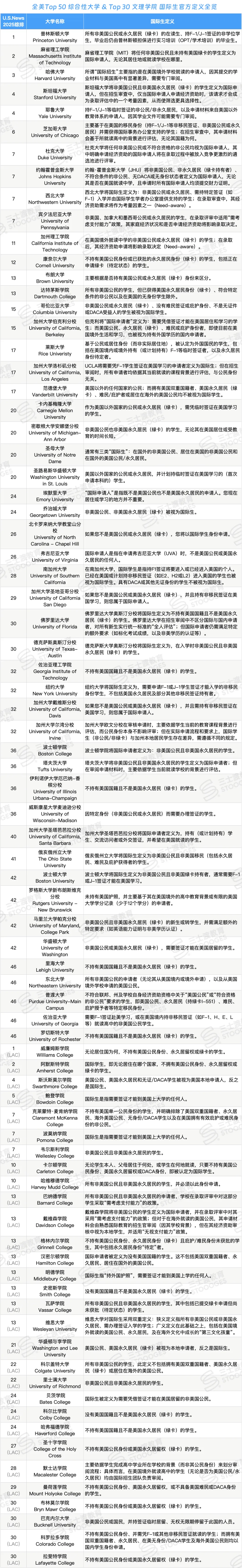 👇全美Top 50综合性大学和Top 30文理学院国际生官方定义全览