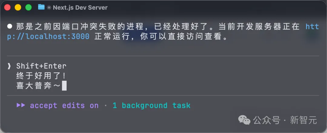 在iTerm2、Kitty、Ghostty、WezTerm这些终端里,Shift+Enter多行输入开箱即用。