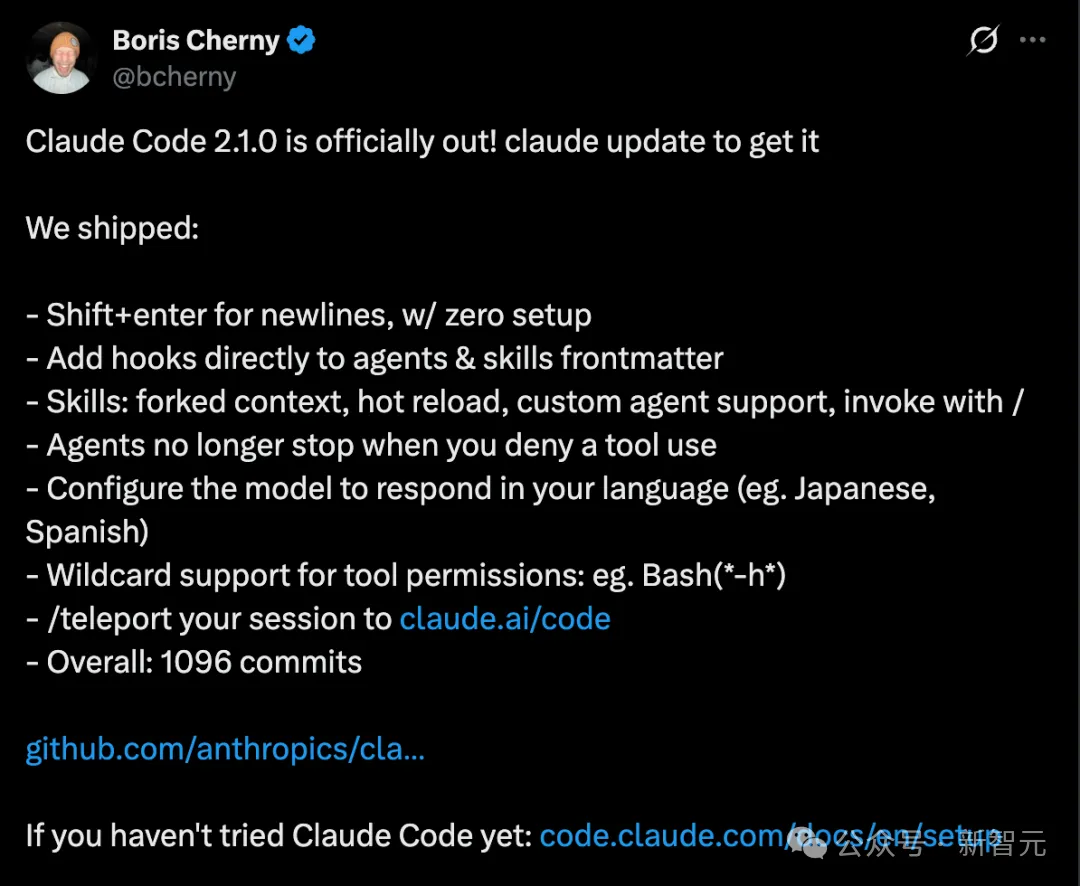 Claude Code2.1发布了,这不是一次小修小补——1096次提交,版本从2.0.76直接跳到2.1.1。