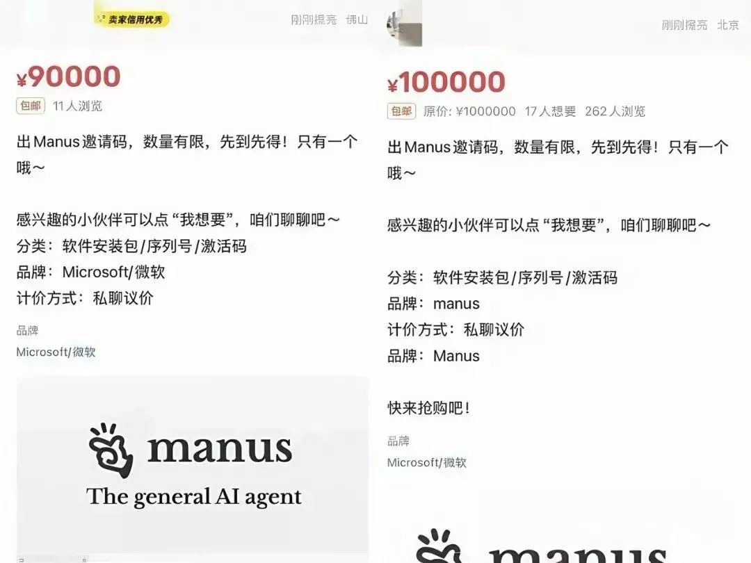 2025年3月,二手平台里的Manus邀请码一度炒至万元