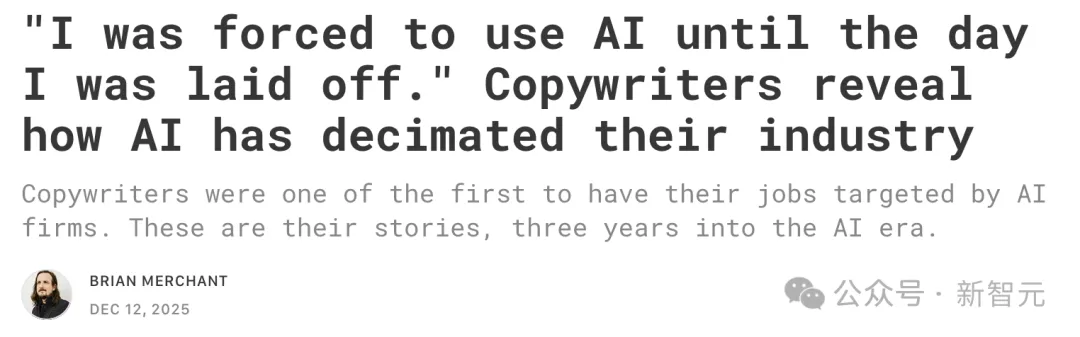 如果说每一次工业革命都有其标志性的受害者,如纺织机之于手织工,那么在AI革命中,文案撰稿人无疑成为了第一批被淘汰的角色。
