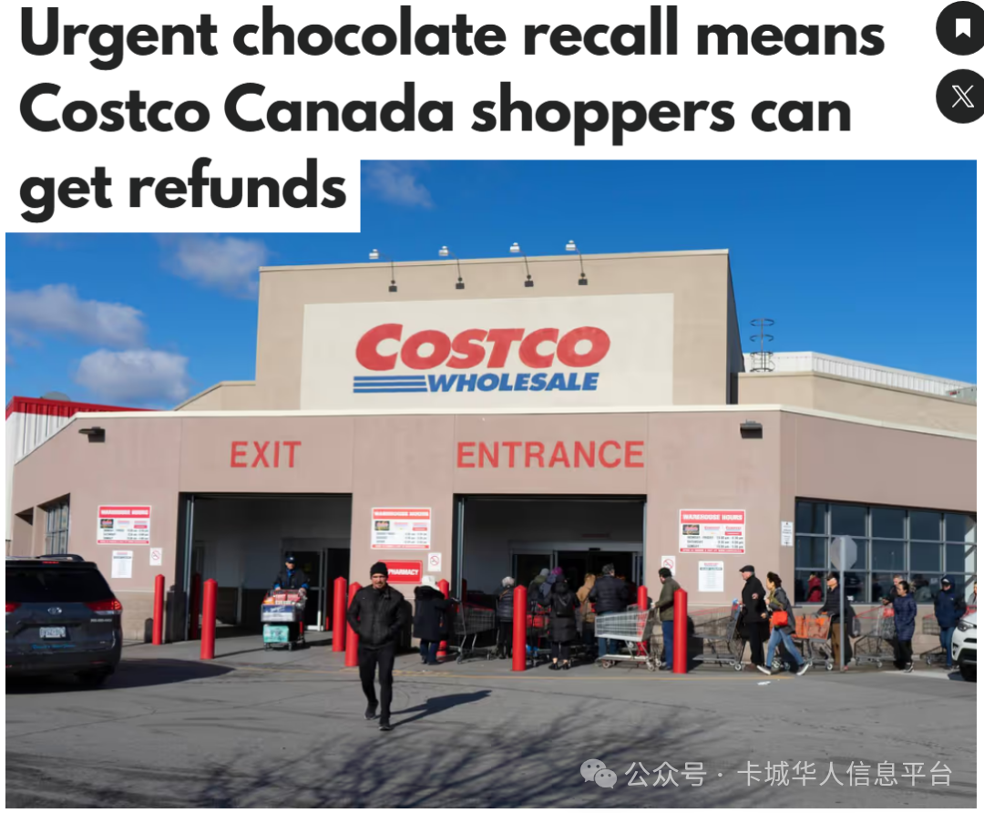 1月8日(周四),Costco加拿大发布通知,宣布召回两款巧克力产品并提供全额退款,原因是产品可能存在食品安全风险。