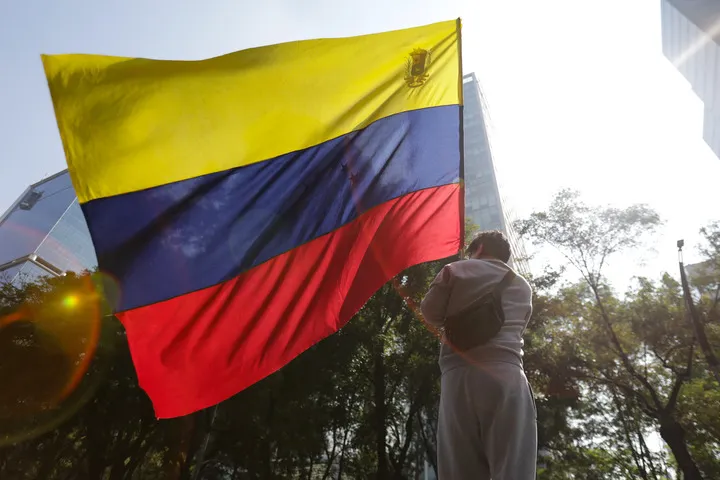 2026年1月10日,在墨西哥首都墨西哥城,当地民众参加示威活动。当日,部分墨西哥民众在墨西哥城举行示威活动,抗议美国对委内瑞拉发动军事打击。新华社发(弗朗西斯科·卡涅多摄)