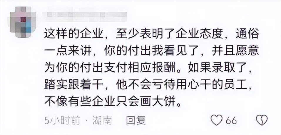 发贴人小李:我面试了很多家公司,有的甚至是已读不回,所以遇见这样暖心的企业,也希望被大家看到。对于刚毕业的大学生来说,公司给的不仅是一份补贴,也是看到了求职者的艰辛。我发贴后看见网友的评论,感到特别暖心,昨天回复评论到半夜两点。