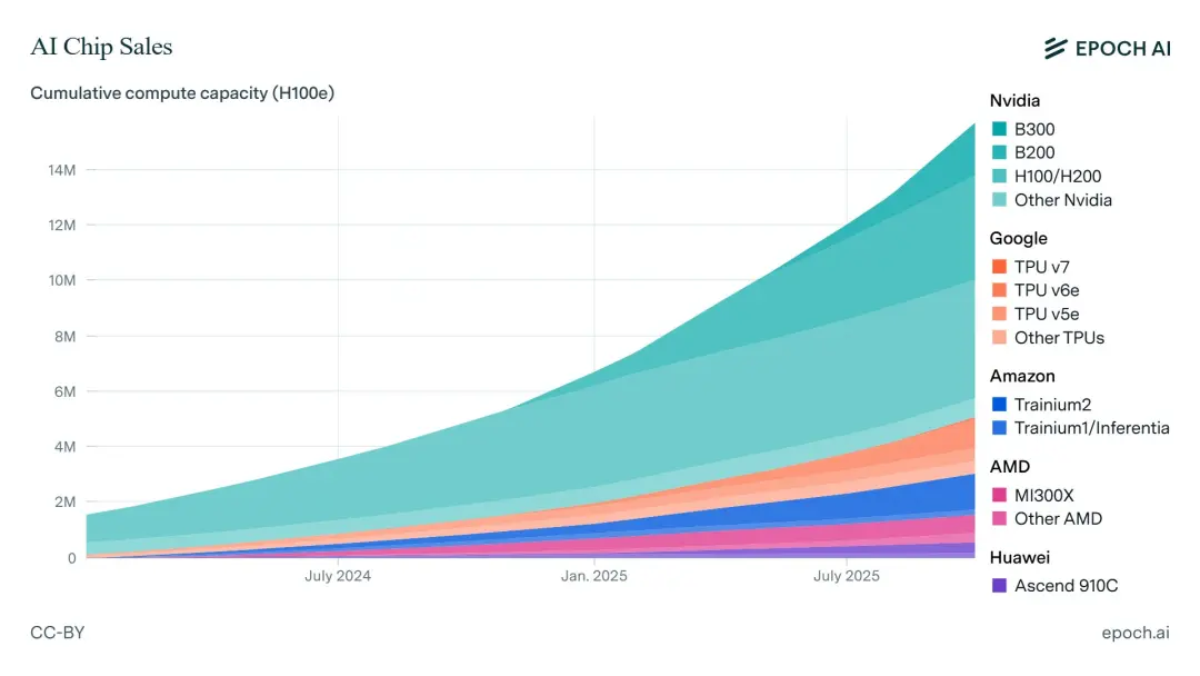 数据显示,全球AI算力总容量已达到1500万个H100 GPU当量!
