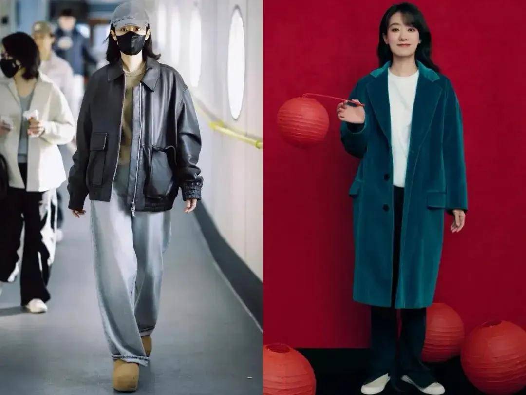 就像上图董洁选择了一件灰白色的大衣,内搭灰色毛衣和一条蓝色的牛仔直筒阔腿裤,脚穿乐福鞋,这样的打扮简约大气,这种极简风的穿搭确实我们普通大众照着穿能够降低出错率。