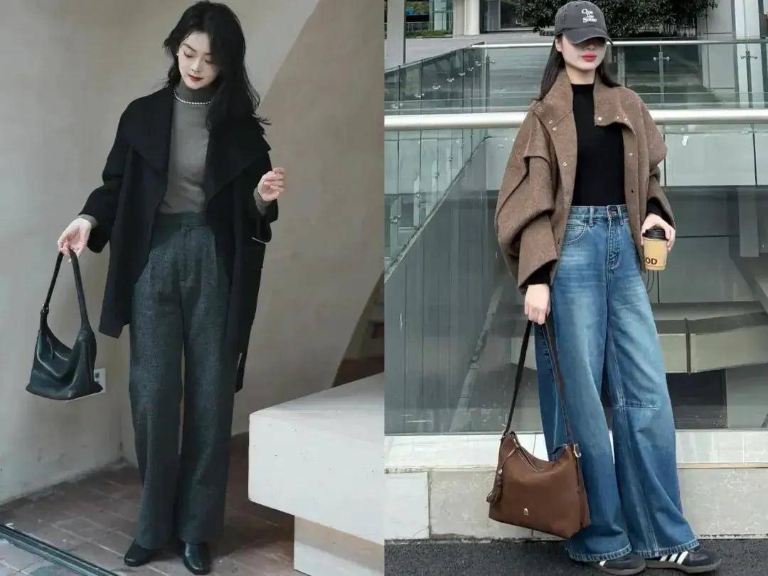 这个冬天别再纠结穿什么样的裤子了,直接选择一条阔腿裤来搭配上大衣外套或者是短大衣,这才是王炸组合,上身效果遮肉显瘦,舒适又时髦,轻松穿出慵懒的高级感,连我们的腿型问题都能一键遮住,让你舒适到不想更换裤子。