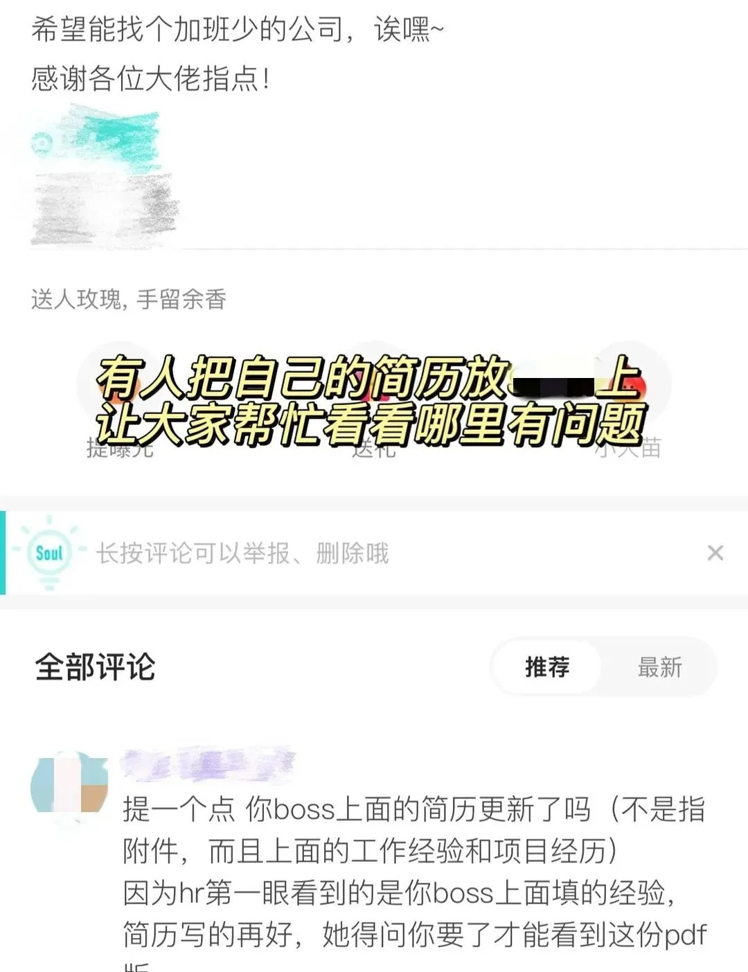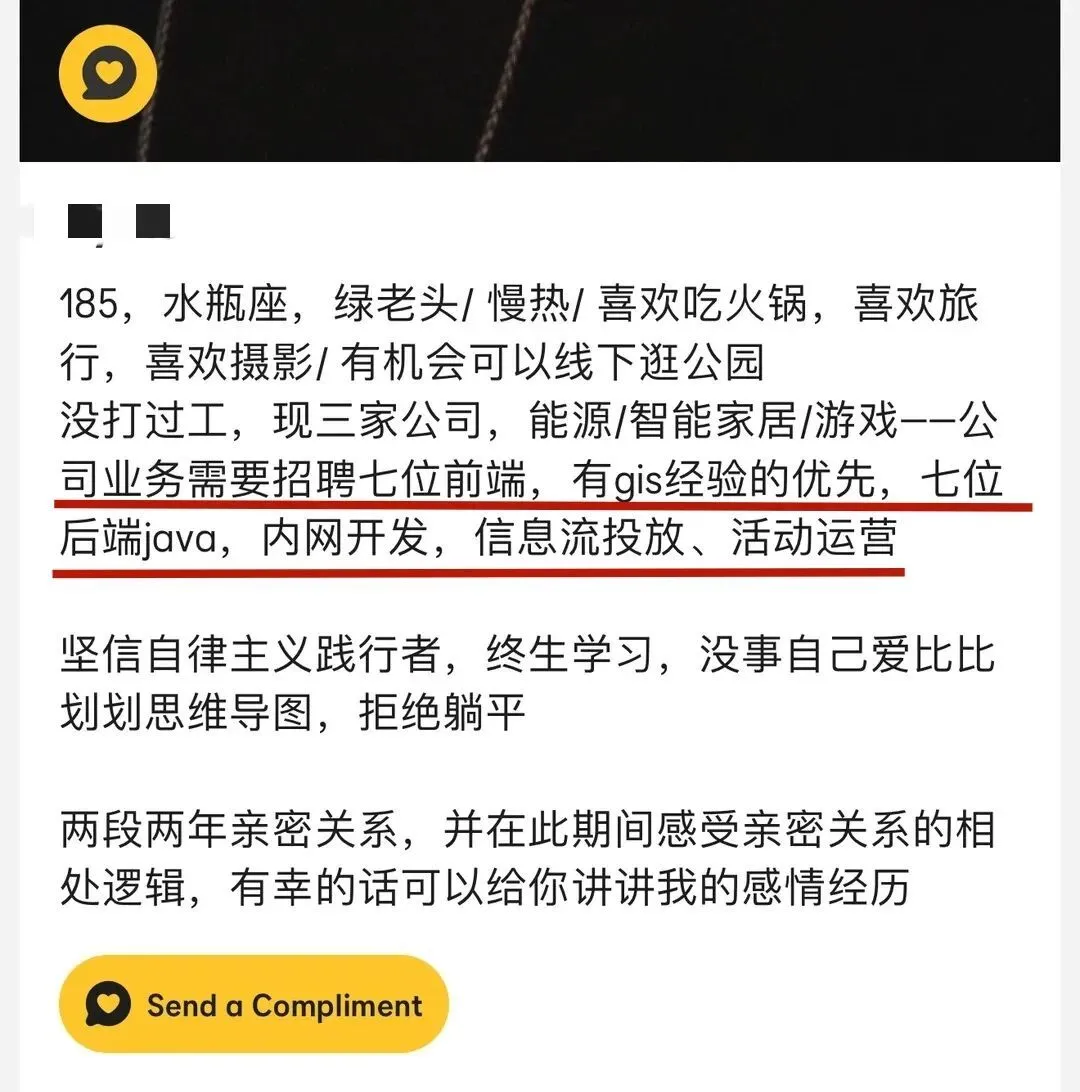 有人直接把自己的简历上传到了约会APP上,求大家帮忙提意见。