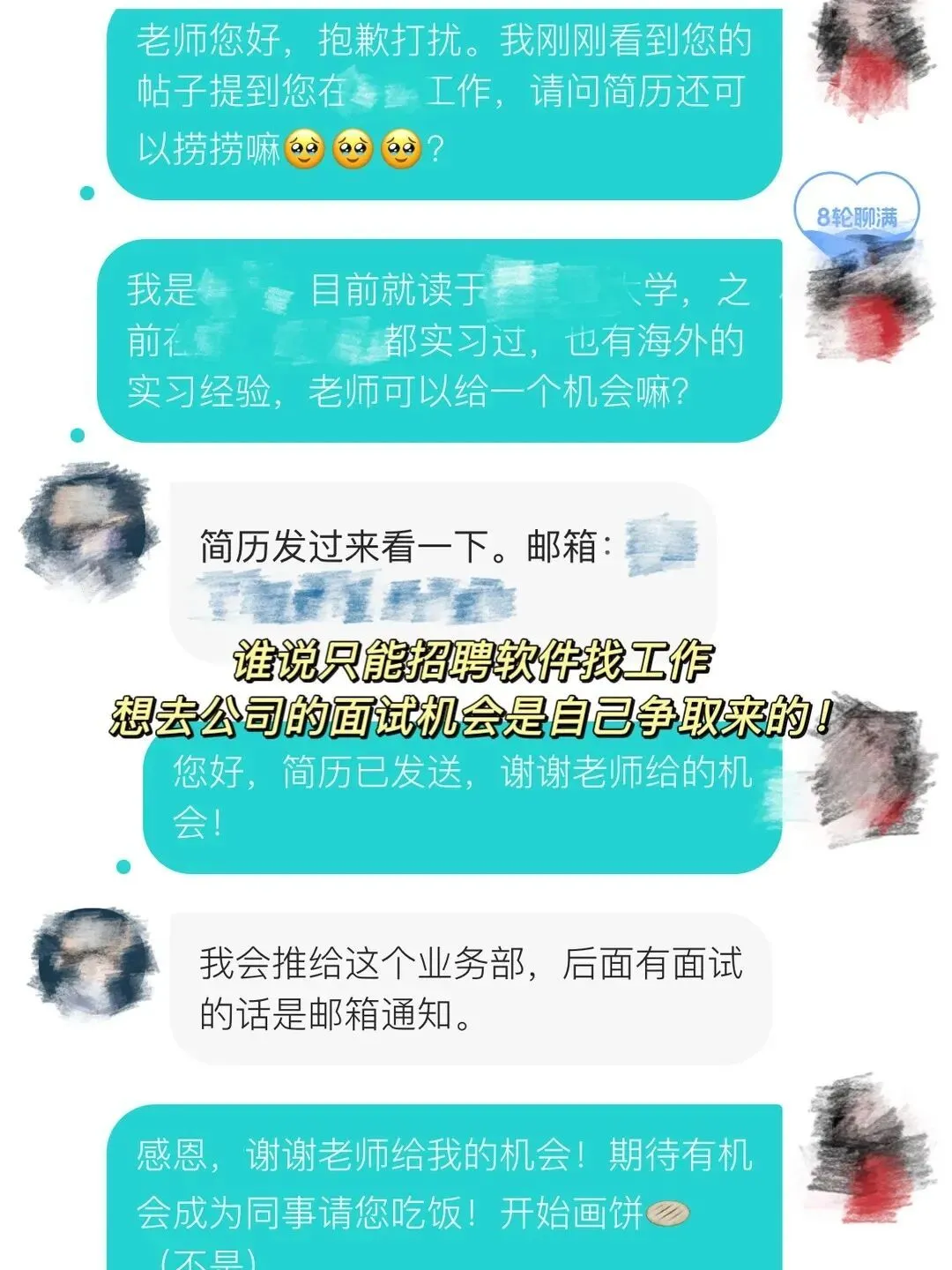 或许是因为在找工作这条道路上淋过雨,大家都愿意为别人撑一把伞。
