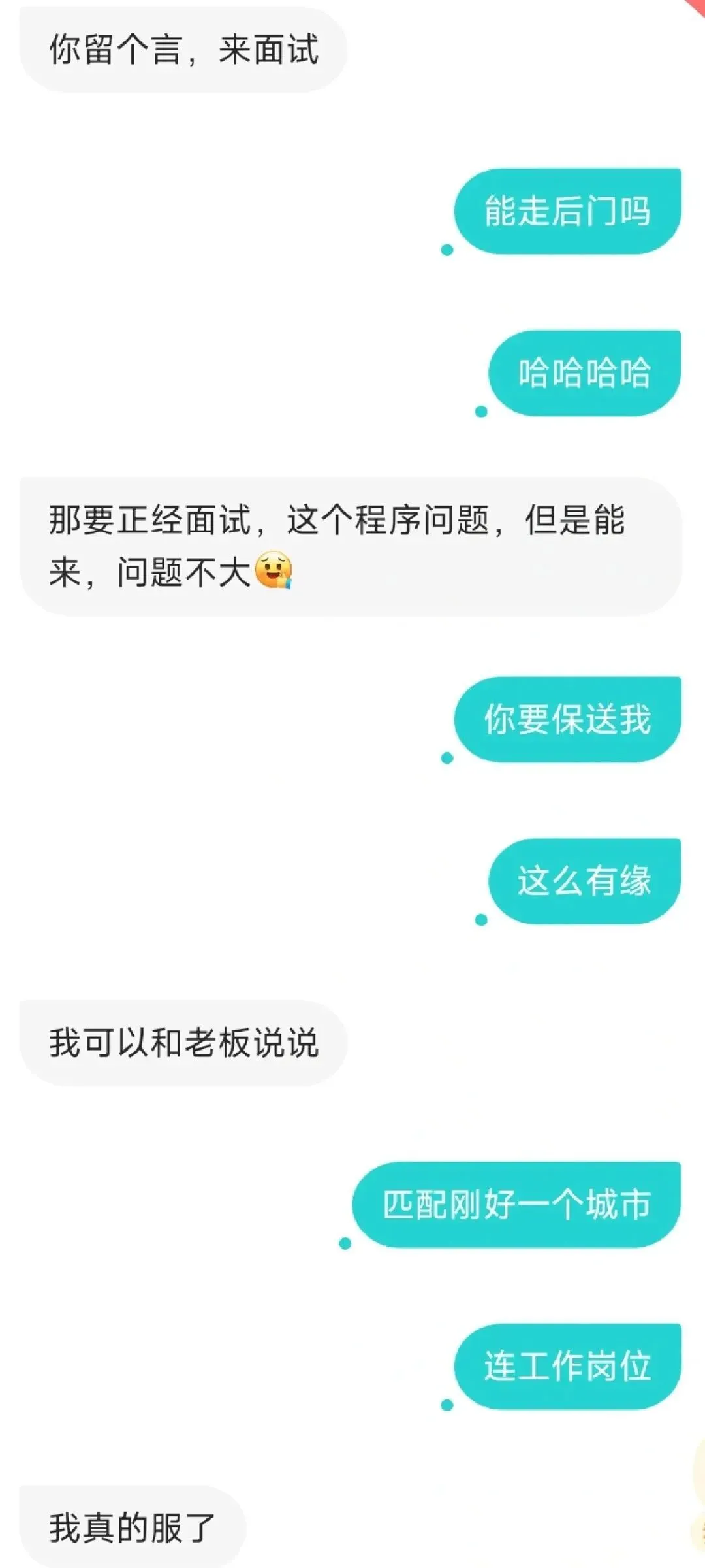 他们不谈风花雪月的事,而是就求职方向和行业发展前景展开了深入对话,聊了两天之后,女生给网友发来了对应岗位的内推码。