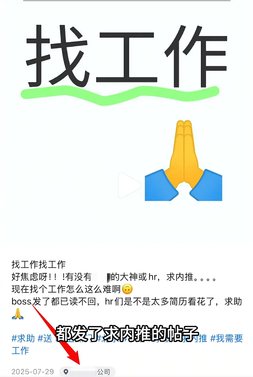 在想去公司的定位下面发帖求内推,等公司员工或HR看到后来捞,同样不失为一种好的选择。