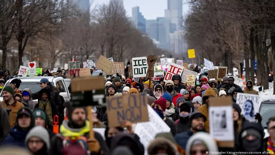 (德国之声中文网)据当地警方介绍,数万人于周六(1月10日)走上明尼阿波利斯街头,抗议美国移民暨海关执法局(ICE)执法人员本周在该市枪杀一名女性的事件。他们高喊被杀美国公民蕾妮·妮可·古德(Renee Nicole Good)的名字,以及“废除ICE”、“没有正义就没有和平——让ICE滚出我们的街头”等口号。这次抗议是周末全国计划举行的1000多场示威之一。纽约、费城、波士顿、西雅图等数十座主要城市都举行了抗议活动。