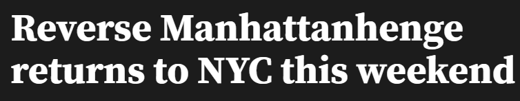 这一现象是每年两次出现的“曼哈顿悬日”的“日出版”。与曼哈顿悬日在日落时太阳与曼哈顿东西向街道完美对齐不同,反向曼哈顿悬日发生在日出时。