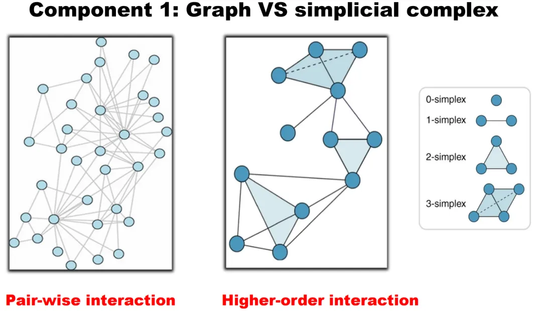 1)单纯复形:采用单纯复形(simplicial complex)的描述方式,相比图描述能捕获数据中更丰富的拓扑和几何信息。