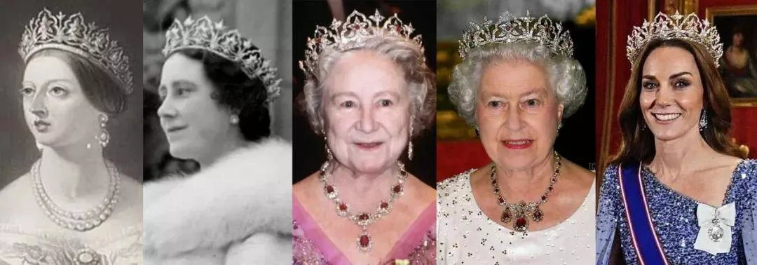 独特的“莲花”造型,灵感源自印度莫卧儿王朝珠宝,象征纯洁与重生,特别适合凯特。维多利亚女王去世后还在其遗嘱中,将王冠设为Queento Queen专属,传承了近两百年,凯特这次的全新解锁,感觉也是为未来加冕王后做准备~