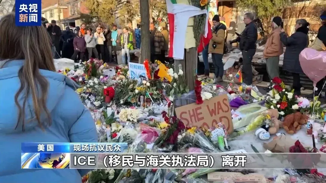 央视记者 刘旭:我现在所在的位置就是明尼阿波利斯市城南的一处居民区,我身后大概10多米远的位置,就是美国白人女性古德被美国移民及海关执法局特工枪杀的具体地点。在当地时间9日,当地警方仍然设置起了隔离带,允许进行抗议、集会等活动。