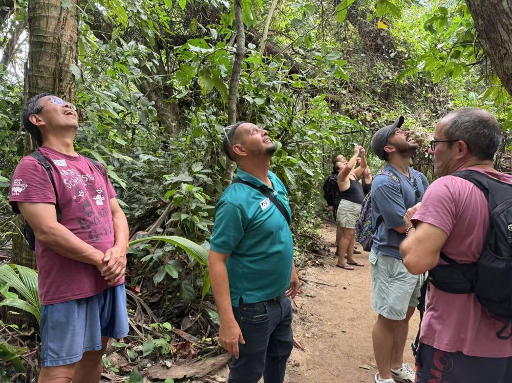 去了河边后来到海边,在一条沿海的路上由导游带领继续看动物,这里看到的树懒较多,黑猴子有八九成群的