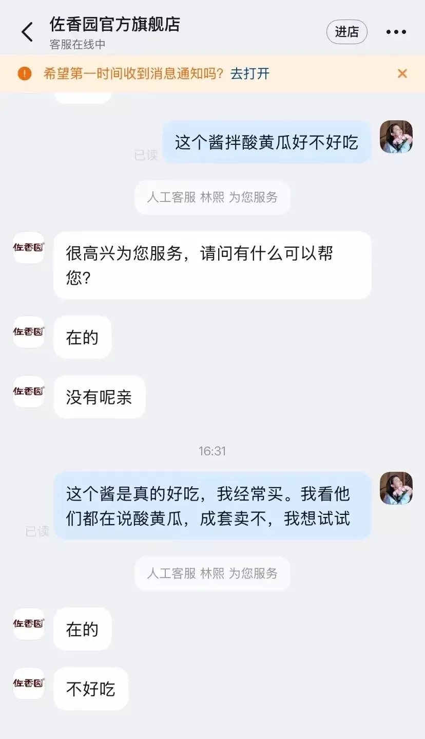 首当其冲的,是闫学晶代言的佐香园黄豆酱。看热闹不嫌事大的网友们第一时间涌入网上店铺,追着客服发问:“这个酱能拌酸黄瓜吗?”