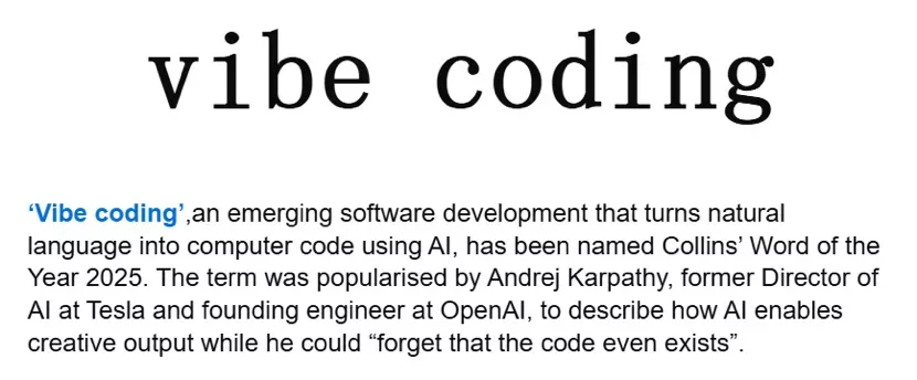 他进入的是时下更火爆的赛道:用AI手搓应用程序。“氛围编程”(Vibe Coding)被英国《柯林斯英语词典》评选为2025年度热词,指借助AI将自然语言转化为编程代码。