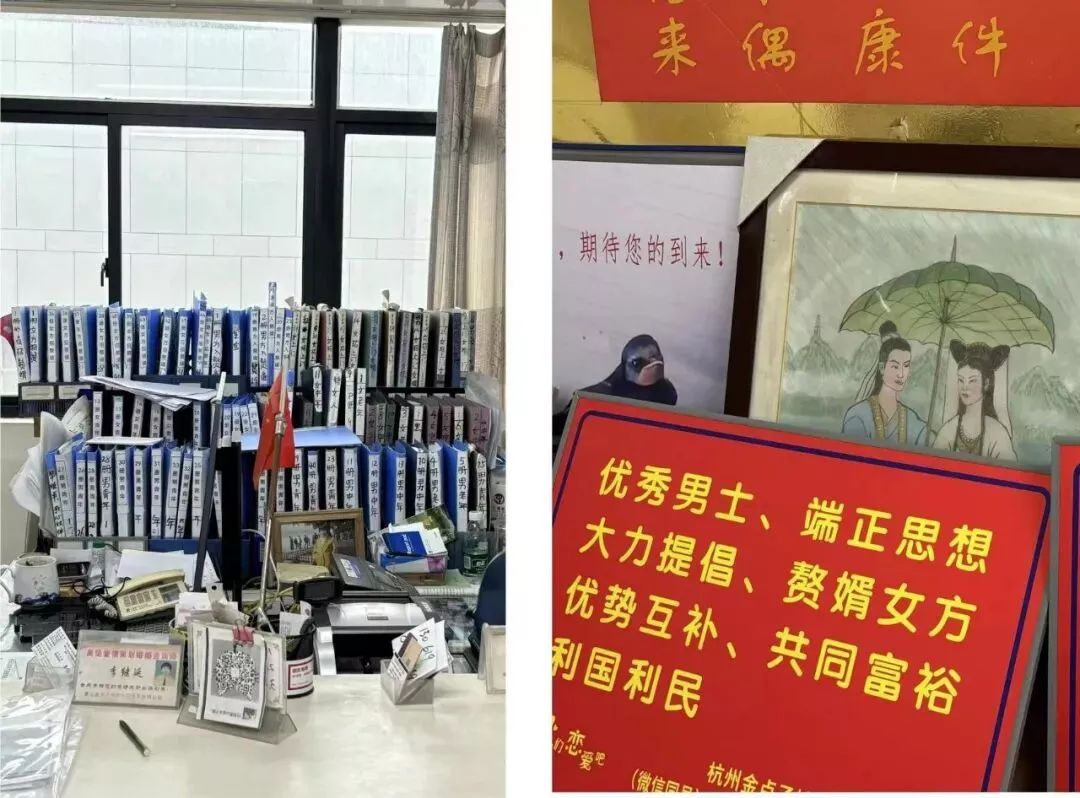 在婚介所里,单身男女的资料、宣传口号塞满了整个小空间