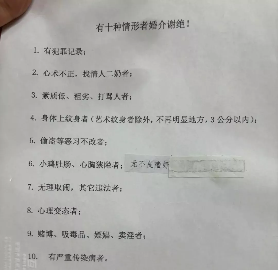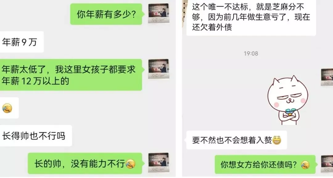 李继延的办法很简单,就是通过不断的聊天。有些人很赤裸,会明确提出物质条件,比如希望女方至少有3套房,现金流800万以上。李继延很直接地告诉对方,“你不是体制内的还这么高要求,不现实,建议去别的婚介所问问。”碰到这样的,他根本不废话,直接拉黑。