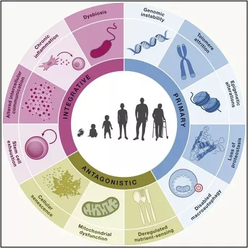 科学家已归纳出十二种“衰老标志”——包括 DNA不稳定、线粒体功能障碍、慢性炎症、细胞衰老与干细胞耗竭——但至今仍无法确定,这些变化是否源于同一根本机制,或是彼此独立演化的衰败路径。