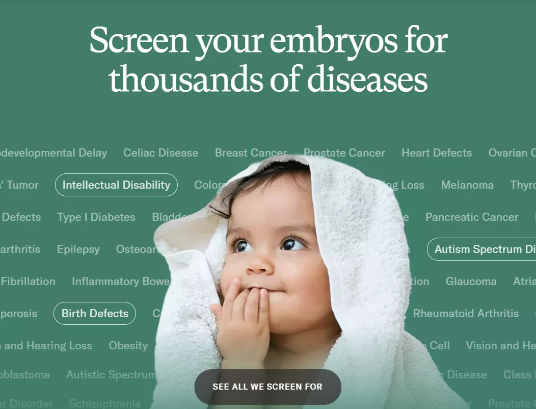 在美国,尤其是在硅谷的富裕阶层中,一种新的消费趋势——“订制婴儿”,正在蔓延:越来越多的家庭开始购买Orchid、Herasight、Genomic Prediction等初创公司提供的胚胎检测(Preimplantation Genetic Testing,PGT)服务,筛选出那个最有可能考上常春藤,且外貌优越的孩子。