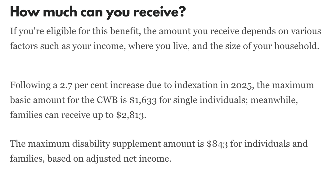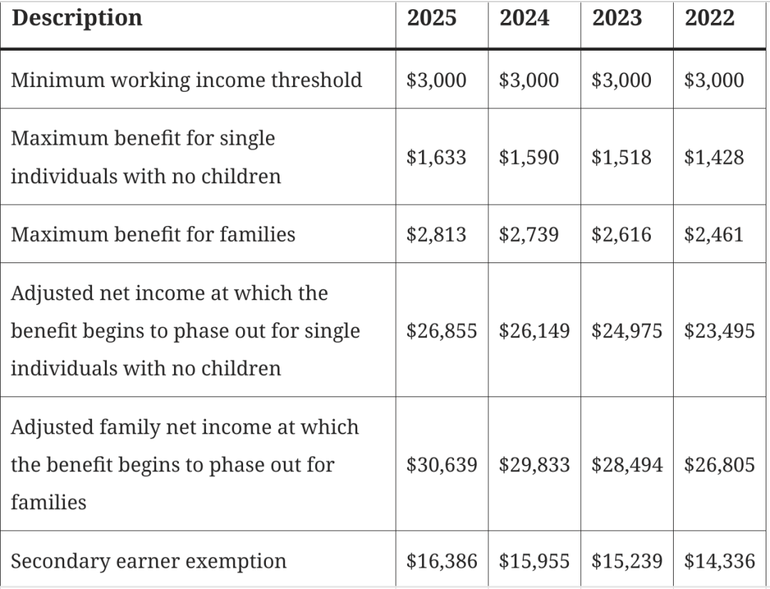 注意:魁北克省、努纳武特地区和艾伯塔省居民的最高基本 CWB 金额将有所不同。
